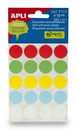 Etikett, 19 mm kör, kézzel írható, színes, APLI, vegyes színek, 100 etikett/csomag
