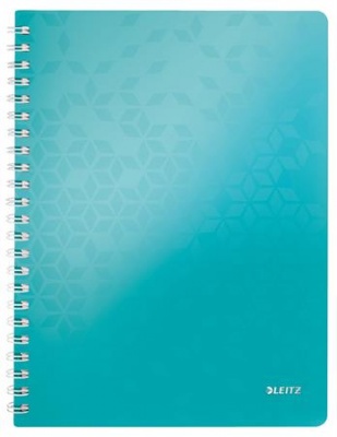KezdőlapIrodaszerekIrodai papíráruFüzetek, gyűrűskönyvbetétekSpirálfüzet, A4, kockás, 80 lap, LEITZ "Wow", jégkék