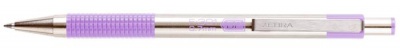 Golyóstoll, 0,24 mm, nyomógombos, rozsdamentes acél, pasztell-lila tolltest, ZEBRA "F-301", kék