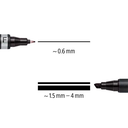 -vonalvastagság:kb. 0,6 mm (F) és kb. 1,5 mm (M - kúpos hegy)