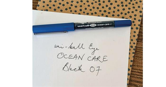 Fedezze fel az új Uni Eye Ocean Care roller tollat. A környezetbarát toll újrahasznosított műanyagból készül, amelynek egy része közvetlenül az óceánból származik.