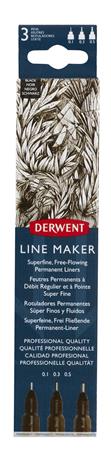 Tűfilc szett, 0,1/ 0,3/0,5 mm, DERWENT "Line Marker", fekete