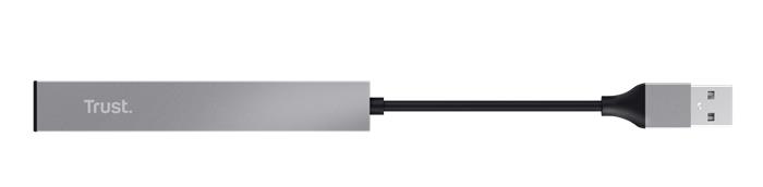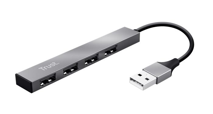 USB elosztó-HUB, 4 port, USB 2.0, TRUST "Halyx", ezüst