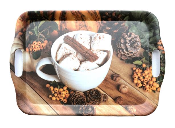 Tálca, szögletes, műanyag, kávéház mintás, 35,5x25,5 cm