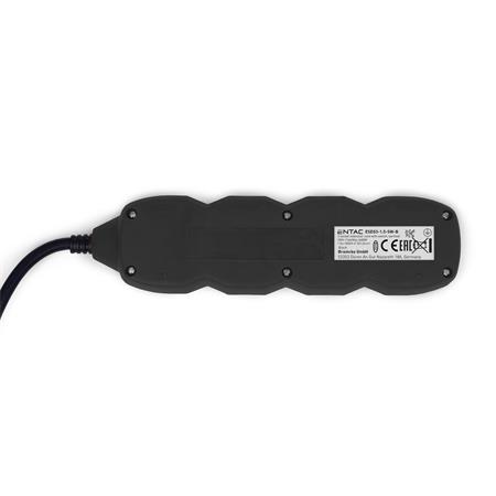 Elosztósor, 3 aljzat, 1,5 m, kapcsolóval, ENTAC, fekete