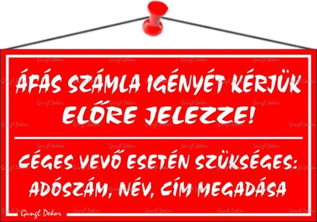 Információs tábla, 22,5x12,5 cm, "ÁFÁS számla igényét kérjük előre jelezze!", piros
